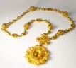 handcrafted tambourine necklace in 14k yellow gold with 1800’s colonial setting.